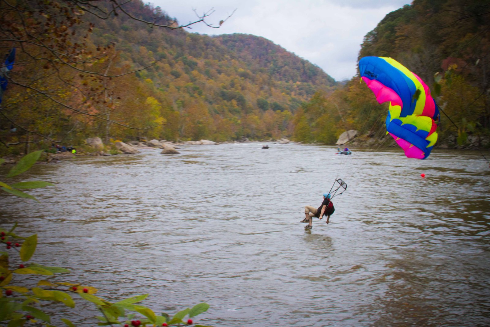 Bridge Day, one of the largest extreme sports event in the world, is held annually on the third Saturday in October in Fayette County, West Virginia. Hundreds of BASE jumpers and repellers are expected to attend the event. Bridge Day is the only day a year to allow predestine traffic on the bridge. Watching people jump off a perfectly good bridge is not the only entertainment. There are many different food and craft vendors set up. You can also purchase a bus pass that will transport you to river level and back up. Personally watching the landings is one of my favorite activities.